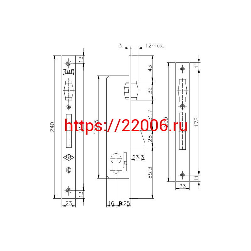 - Корпус Kale kilit (Кале килит) узкопрофильного замка с роликовой защёлкой 255 (25 mm) w/b (никель) в Туринске недорого
