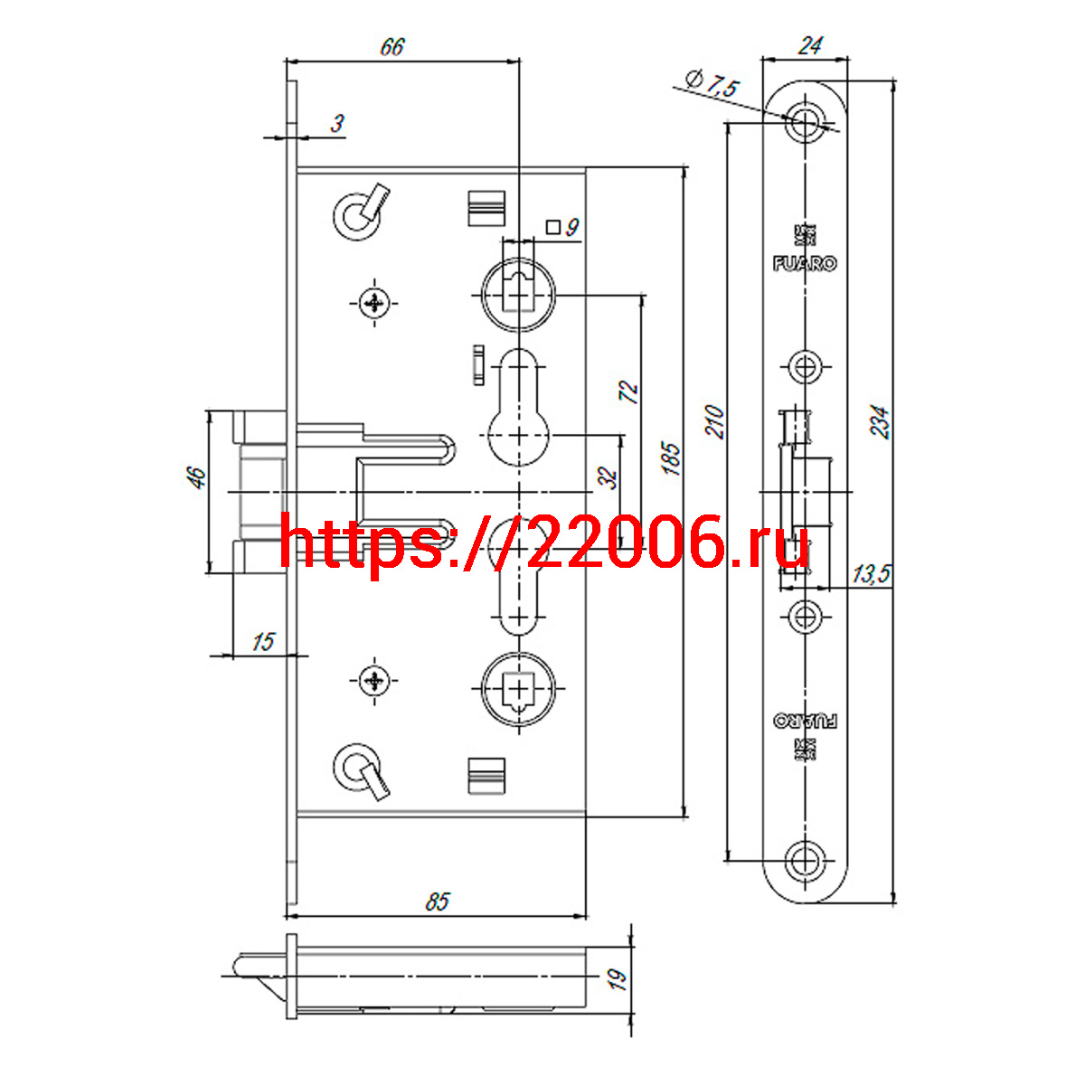 - Корпус Fuaro (Фуаро) врезного замка c защёлкой FP.C-65.72-0432 (FL-0432) в Туринске недорого