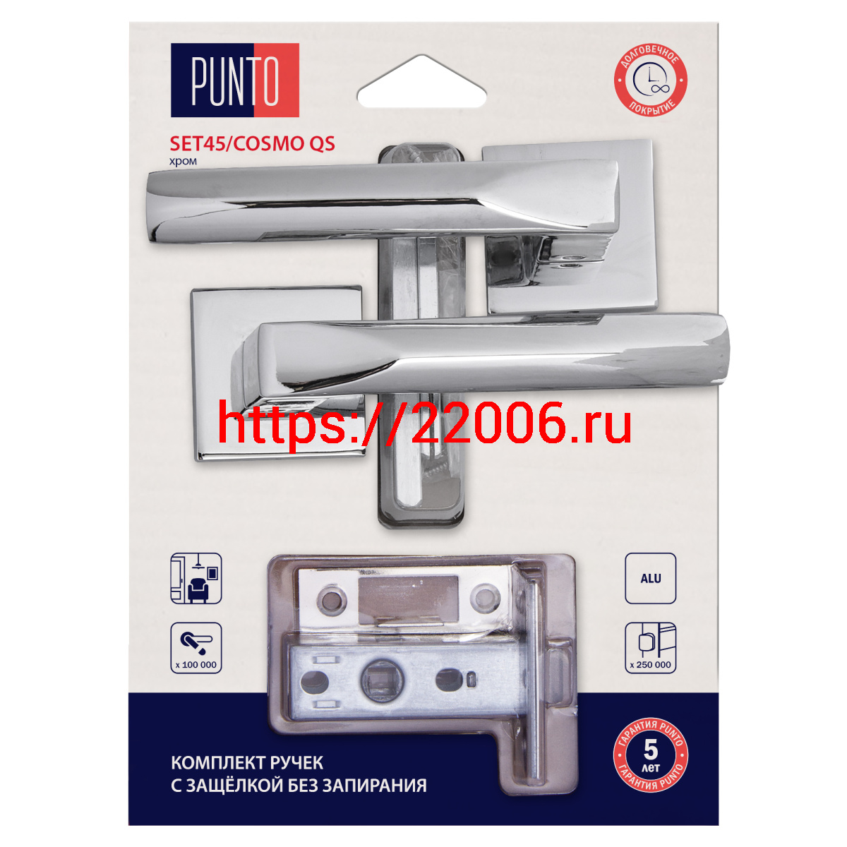- Комплект ручек Punto (Пунто) с защелкой без запирания LM/A SET45K.QS52.COSMO/HD CP-8 хром в Туринске недорого