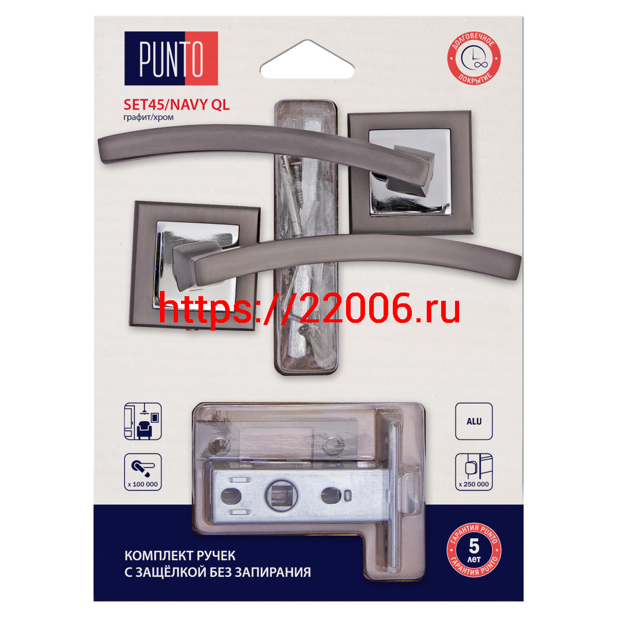 - Комплект ручек Punto (Пунто) с защелкой без запирания LM/A SET45K.QL52.NAVY/HD GR/CP-23 графит/хром в Туринске недорого