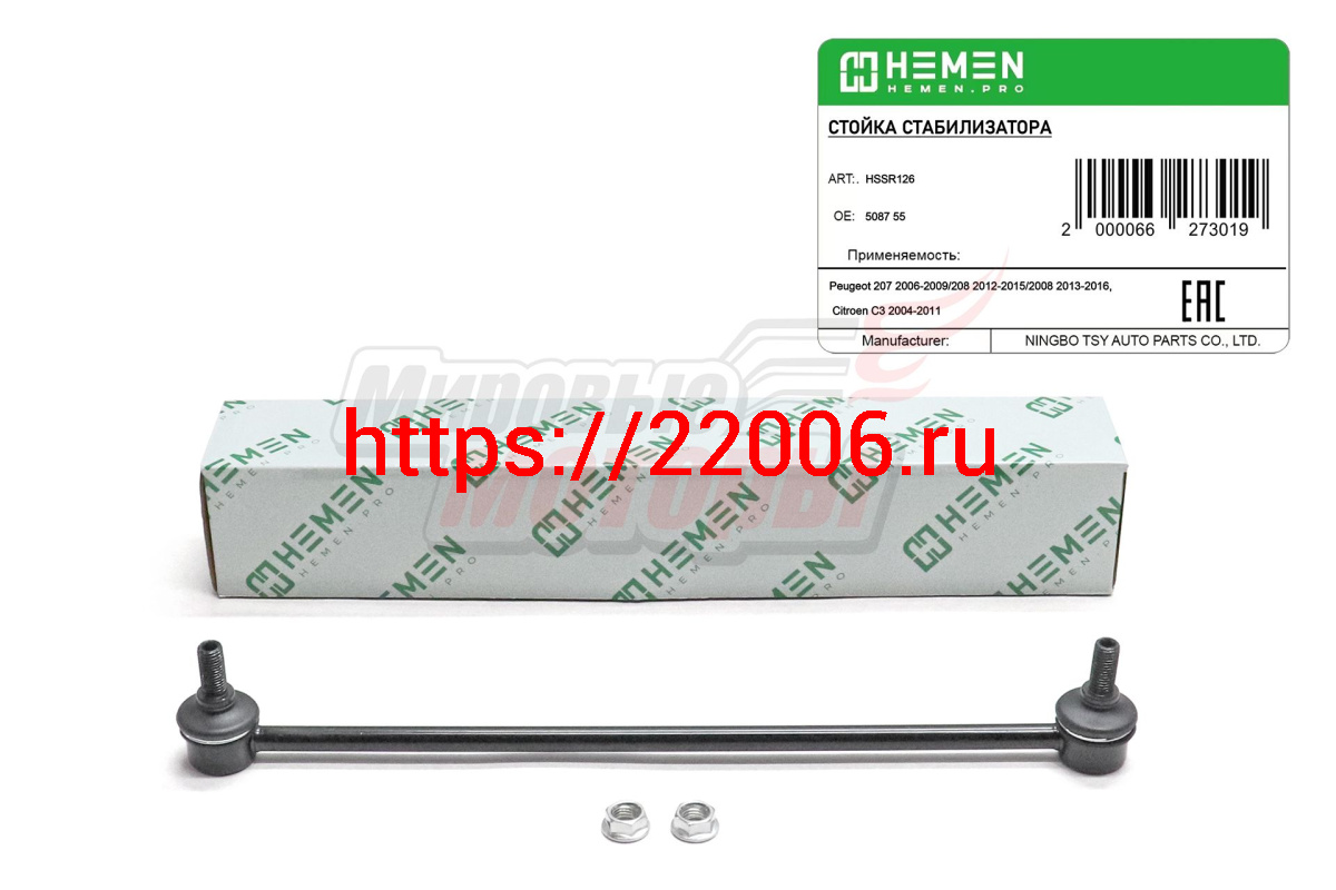 - Стойка стабилизатора передняя правая Peugeot 207 06-, 208 12-, 2008 13-, Citroen C3 04- (HSSR126) в Туринске недорого