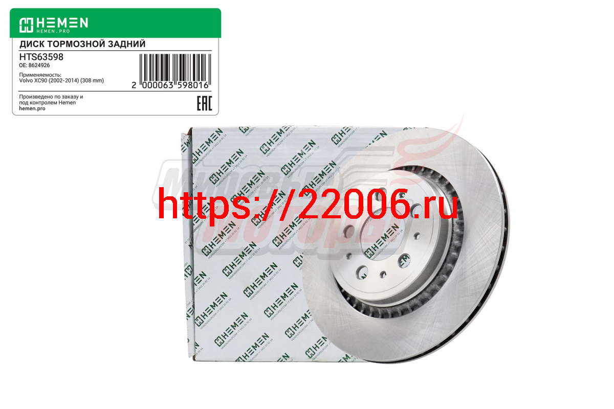 - Диск тормозной задний VOLVO XC90 02-14, диам. 308 (HTS63598) в Туринске недорого