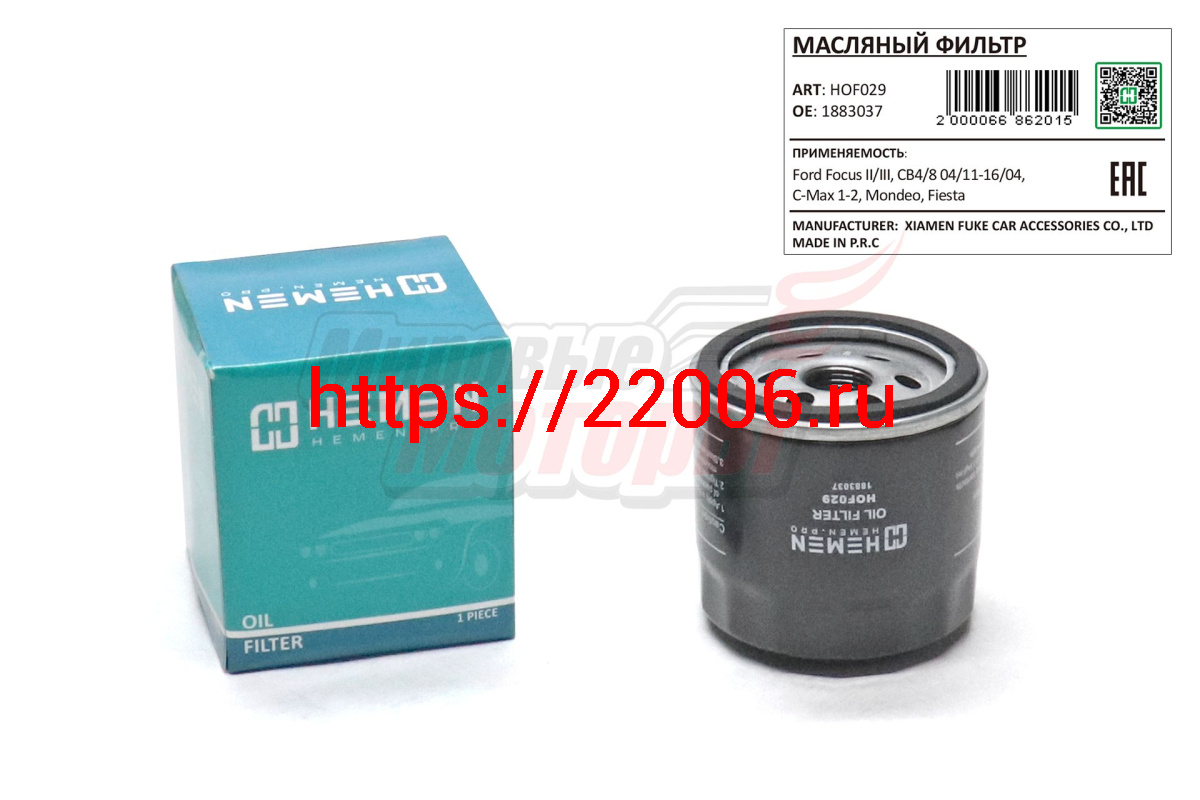 - Фильтр масляный Ford Focus II/III, CB4/8 04/11-16/04, C-Max 1-2, Mondeo, Fiesta (HOF029) в Туринске недорого
