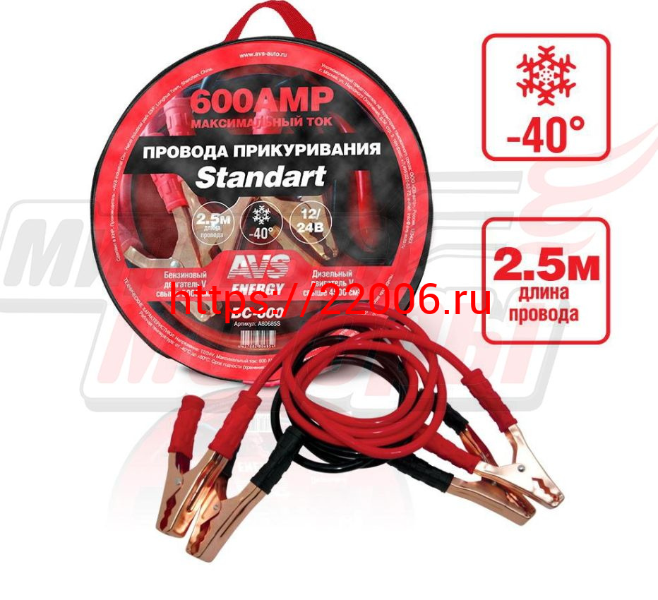 - Провода прикуривателя "AVS" Standart морозостойкие 600А/2,5м (ВС-600)(в сумке) в Туринске недорого
