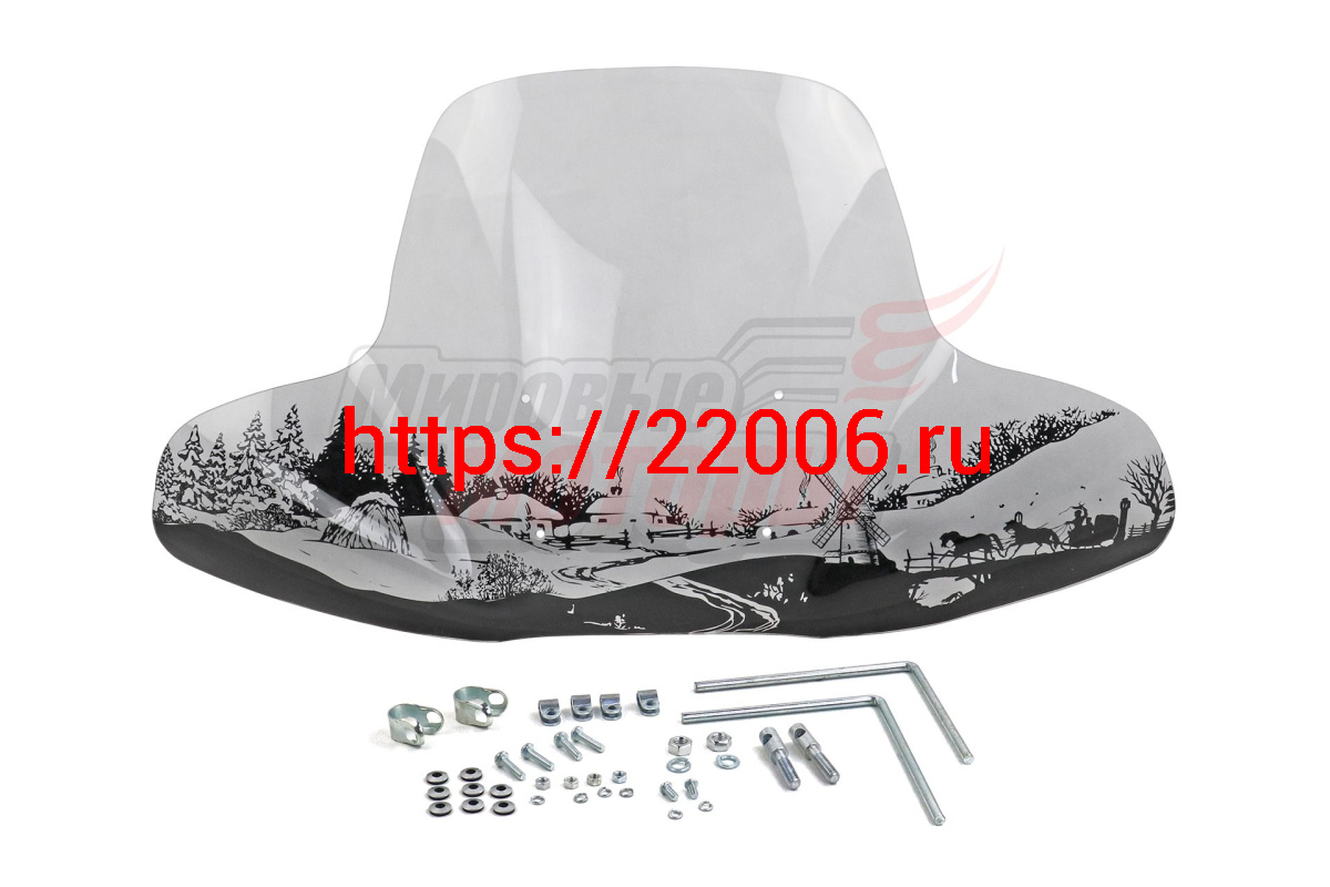 - Щиток ветровой "Деревня" (жесткое стекло с шелкографией) (3мм) (для квадроциклов) (с крепежами) в Туринске недорого