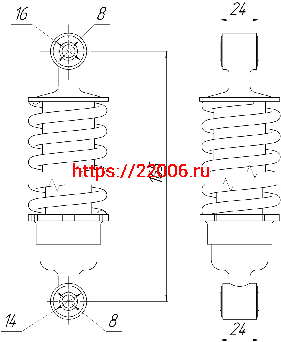 - Амортизатор рамы зад. (800LBS*165L)(HG-D (TG-F)) закрытый (L-165, D1-16,d1-8,Н1-24, D2-14,d2-8, Н2-24) в Туринске недорого