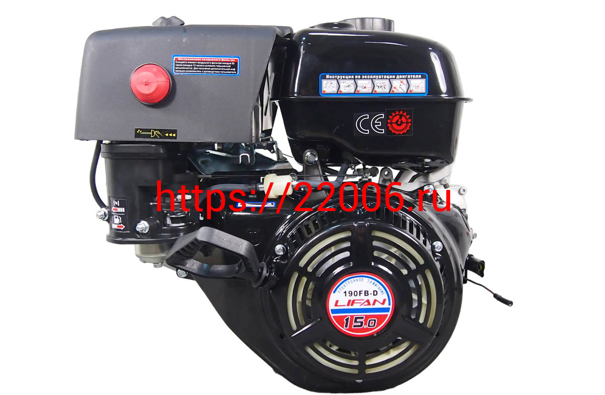 - Двигатель LIFAN 15 л.с. 190F-D (вал d25 мм) ЭЛ.СТАРТЕР, с катушкой освещения 12В 18А 216Вт в Туринске недорого