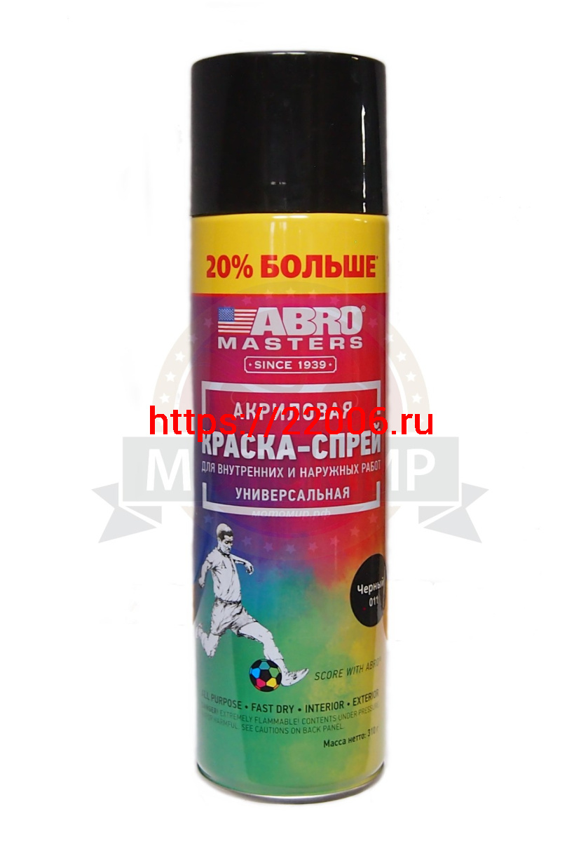- Краска спрей ABRO masters +20%, универсальная ЧЕРНАЯ глянцевая аэрозоль, 310 мл. (SP-011-L-AM-RE) в Туринске недорого