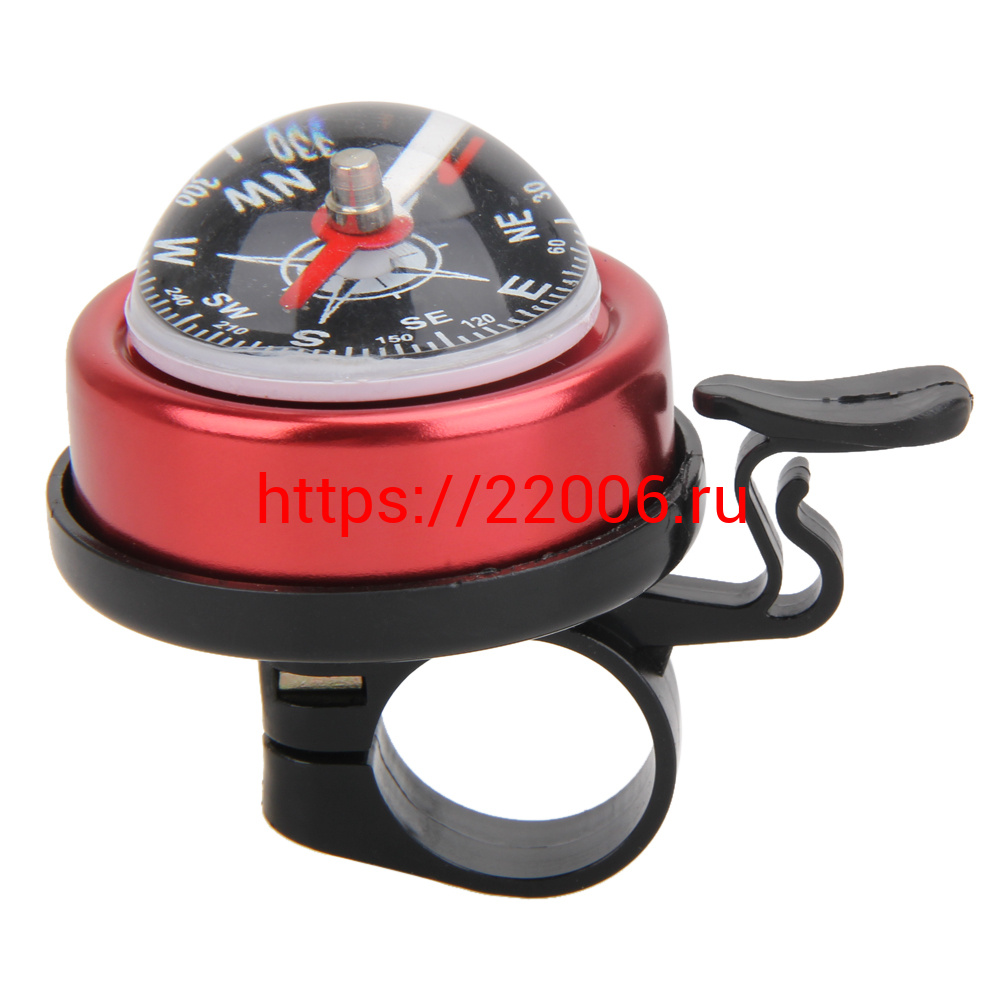 - Звонок велосипедный малый с компасом, сталь/пластик, синий/красный в Туринске недорого